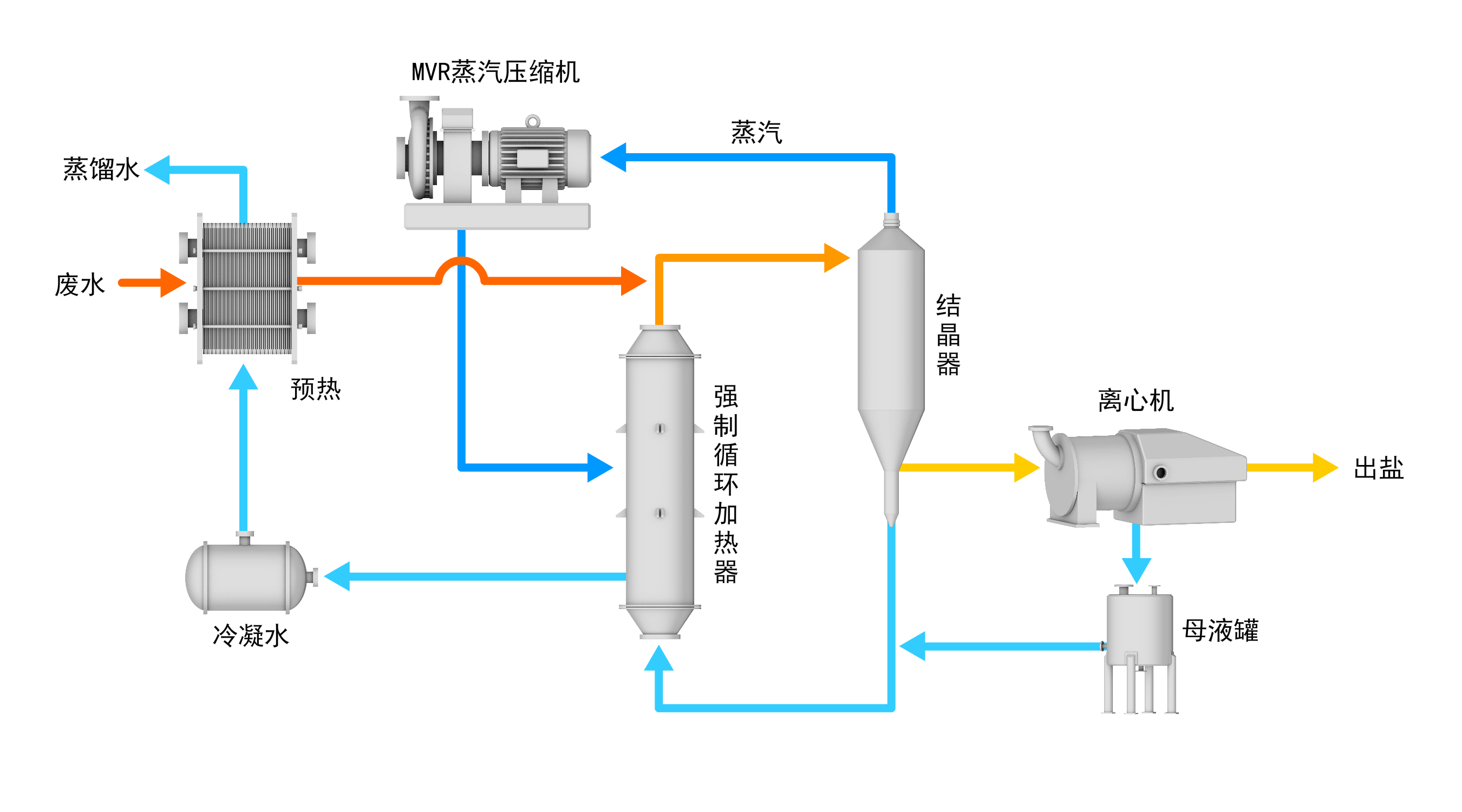 MVR技術(shù)廣泛應(yīng)用于高鹽廢水處理和工業(yè)生產(chǎn)領(lǐng)域。
